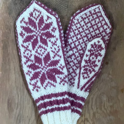 Hjemmestrikkede rosa Selbuvotter til dame 👩 🦰