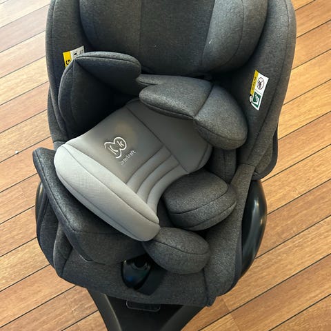 Kinderkraft barnesete i størrelse 18 i grå farge. Setet har polstret sitte- og liggeflate med ekstra side- og hodebeskyttelse. Det har integrert base og støtteben, samt justerbar innredning for å tilpasses barnets størrelse. Stofftrekket er mykt og omsluttende, og setet er utformet for bruk i bil for trygg transport av barn innenfor angitt vekt- eller størrelsesgruppe 18.