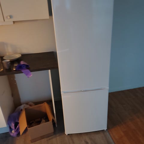 Skapet er frittstående og egner seg til bruk på kjøkken, bod eller andre rom der det er behov for kombinert kjøl og frys. Det er synlige spor og skader på toppen bak skapet men ein taip bitt så er den nesten ikke synlig. Da det ble kjøpt som B vare hos Jensen elektronisk i september 2024 , som fremgår av bildene. Kan få med bilde på kvitering også. Og har bare vært i bruk ett år før jeg flytta og da har det bare stått og tatt opp plass