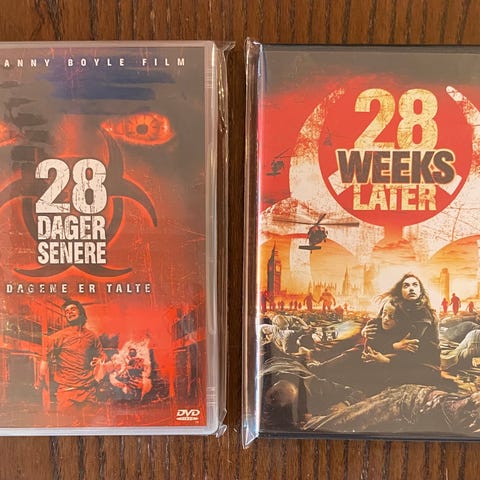 28 Days Later og 28 Weeks Later, på blu-ray.