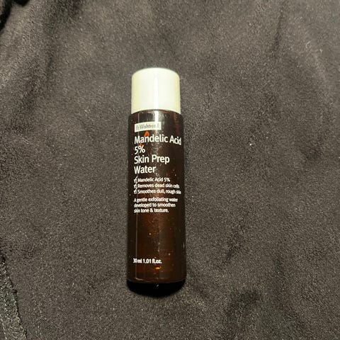 Mandelic Acid 5% Skin Prep Water er en fuktighetsgivende, daglig leave on-eksfoliering, som hjelper til med å løse opp i gamle hudceller, noe som resulterer i en mykere og mer strålende hud. Cellefornyelsen øker, noe som gir en sunnere glød og økt fasthet. Mandelsyre er en mild, men effektiv AHA som har god effekt på hyperpigmenteringer, forbedrer en grov hudstruktur og minimerer fine linjer. Mandelsyrens velkjente antibakterielle egenskaper gjør den perfekt for en fet hud med acne og urenheter. Panthenol, hyaluronsyre og betaglukan beroliger, fukter og reparerer huden. Produkten forbedreder og optiamliserer etterfølgende pleie. Ansiktsvann/ leave on-eksfoliering med mandelsyre. Gjør huden myk, jevn og strålende. Passer alle hudtyper, også sensitiv hud