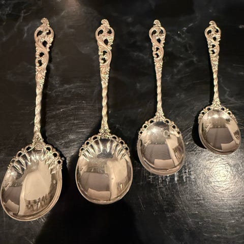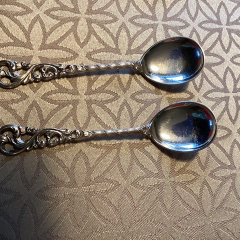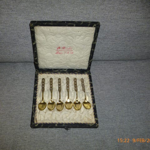 Teskjeene veier litt forskjellig: 14,7g, 15g og 16,3g. 350kr pr stk