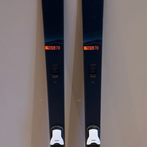Skiene ble kjøpt til min datter, men har ikke vært prøvd, mao nye. Bindingene, Rottefella 75 mm var pent brukt før de ble montert på skiene.