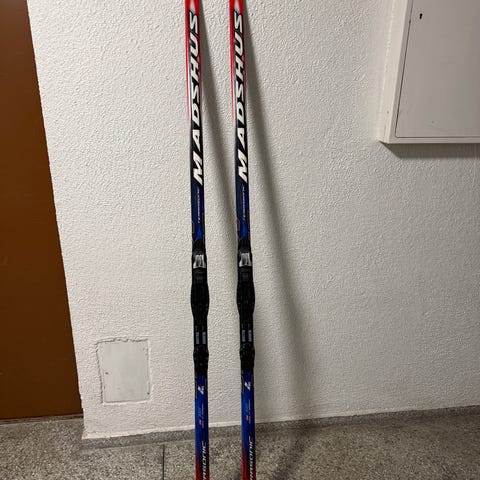 En liten plastdel på bindingen (én side) er ødelag. Skiene selges som de er.