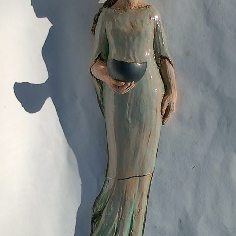 Morsom og dekorativ keramikk. Lysestaken er utformet som fire stablede kattedyr med stripemønster. Blå og hvit med glasert overflate. Høyden på figuren er 16,5 cm og hel lengde er også 16,5 cm. Figuren har vært limt, som det kommer frem av bildene og selges derfor rimelig. Dette syntes ikke så godt, og den er svært dekorativ når den stikker hodene frem mellom bøkene i en bokhylle eller i mellom plantene i vinduskarmen din.