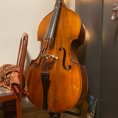 Jeg selger min trofaste kontrabass da jeg venter på nytt instrument i april. Bassen ble kjøpt ny for 1,5 år siden og er en solid "Europe"-modell produsert av anerkjente Hora i Romania.
