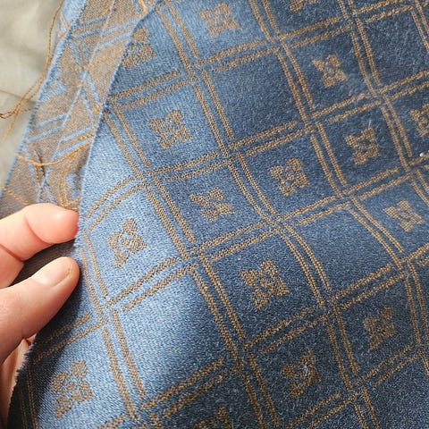 Sel 3 meter gråmelert ullstoff. Stoffet vart kjøpt inn til eksamensprosjekt i tekstilemnet på kunst og handverk ved høgskule, men eg fekk ein ny idé😅 Så dette vart aldri brukt.