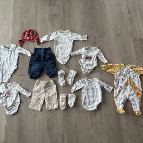 Klespakke unisex str 50-56 🩷🩵 10 plagg + sokker