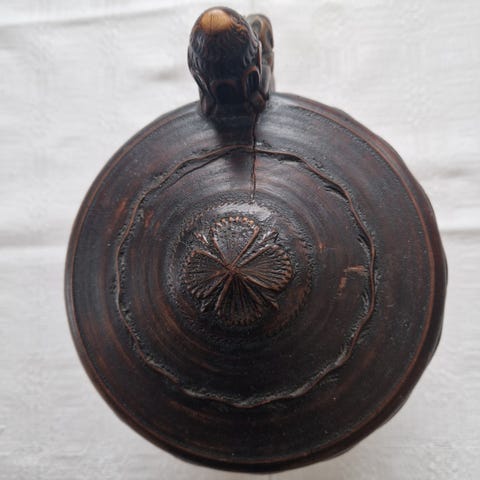Fint og helt løvehodekrus fra 1714. Det er en sprekk i lokket mot løvehodet. Se på bildet.