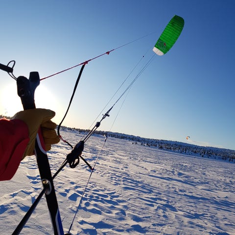 Kiten leveres med pumpe og transportsekk fra Flexifoil. Egnet for kiting på snø. Settet inneholder kite, styresystem med bar og liner, samt oppbevaringssekk.