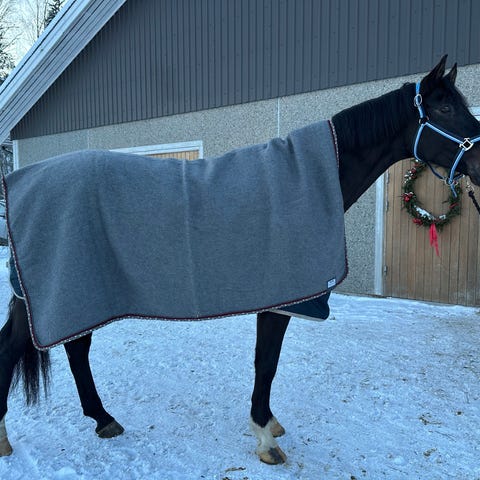 Selger et fleecedekken fra top reiter med hals, da det er litt for lite til min islandshest som bruker str 135 til vanlig. Dekkenet er nesten ikke brukt pga dette, men har dessverre fått noen hull pga mus.
