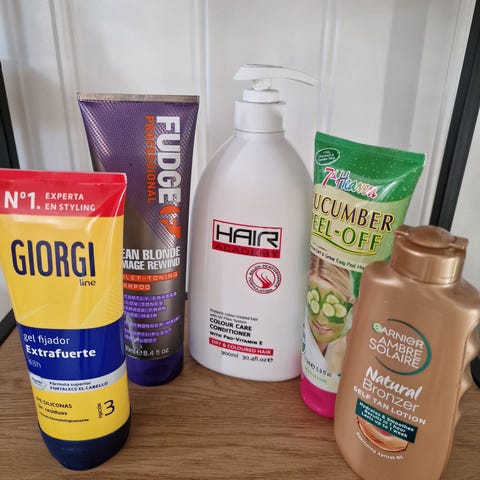 Hårspray (brukt 1 gang), hårvoks ny og serum fra The Ordinary (brukt en gang).