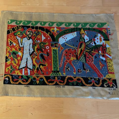 «Teppet» har hengt unna sollys, så farger og mønster er klare og tydelige.