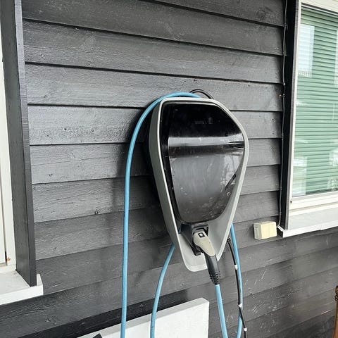 BMW i ladeboks for elbil. Veggmontert ladestasjon egnet for lading av BMW i og andre kompatible elbiler. Enheten har integrert ladekabel og indikatorlys på fronten. Passer for fast installasjon i garasje eller på vegg der det er tilrettelagt for elbillading. Tekniske spesifikasjoner som effekt, tilkobling og kabeltype avhenger av konkret modell og bør kontrolleres mot merkingen på enheten eller i brukerveiledningen.