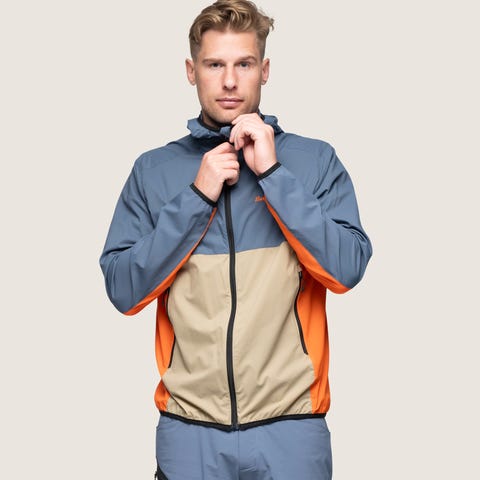 Bergans Explore Today turjakke for herre i størrelse M. Jakken er i gråtoner med kontrastdetaljer og hette. Den er egnet til fottur og annet friluftsbruk. Modellen har frontglidelås og glidelåslommer i siden. Materialet er et teknisk stoff tilpasset utendørsaktiviteter. Passformen er tiltenkt herre, og størrelsen tilsvarer M ifølge merkelappen på innsiden.