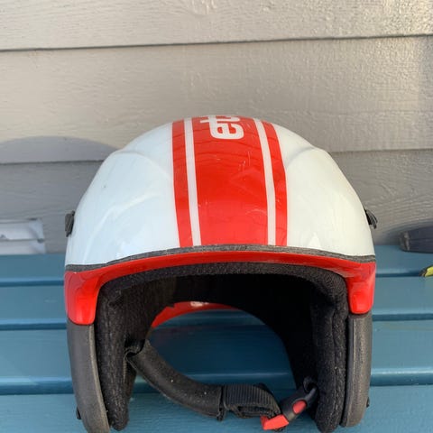 Hjelmen er brukt, men i grei stand. Noen bruksmerker/riper på utsiden (se bilder), men ingen sprekker.