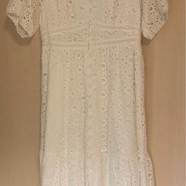 H&M sommerkjole for dame i størrelse S. Kjolen er grønn og laget av bomull. Den har broderie anglaise-liknende hullmønster i stoffet og elastisk strikk øverst. Passer som lett sommerkjole i hverdagen eller til enkle anledninger.