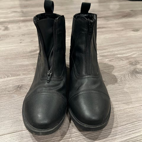 Svarte, god glidelås og strikk. Selges da de ikke blir brukt. Perfekt til rideskole, eller om foretrekker å ri i sko istede for støvler.