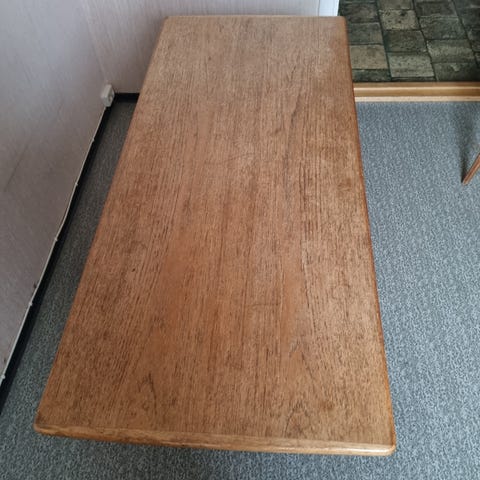 Pent teakbord, men trenger nok litt rens og ny olje.