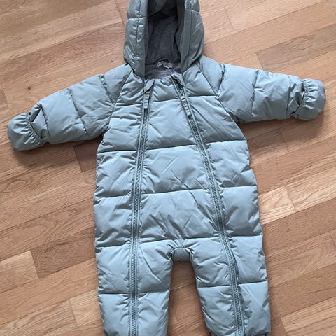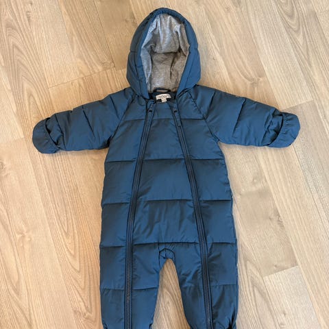 Nesten helt ubrukt Reflex kjeledress for barn i størrelse 68-74 (6-12 mnd). Dressen er blå og laget i polyester. Modellen har hette og to glidelåser i front for enkel av- og påkledning. Innsydde votter på ermene og lukking ved bena. Mykt, lyst fôr på innsiden. Unisex-modell som passer både gutter og jenter.