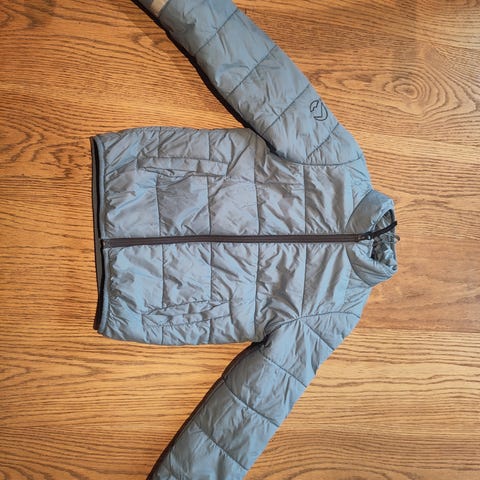 Hel og fin lett boblejakke fra norske Vikafjell selges billig pga plassmangel. Jakken hadde et hull på det ene ermet, som er sydd. Jakken har også noen små prikker, som antas å gå bort i vask (se bilde).