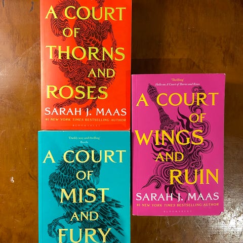 Sett med to engelskspråklige pocketbøker fra serien «A Court of Thorns and Roses» av Sarah J. Maas: