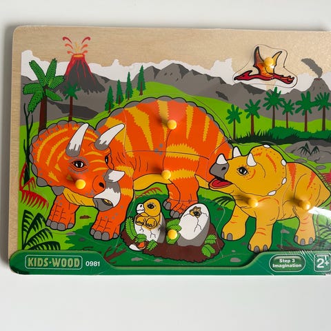 Playtive Junior trepuslespill/treleke med bondegårdsmotiv. Puslespillet er laget i tre og har en grønn bakgrunn med flere fargerike brikker formet som bondegårdsdyr, bonde og ulike gårdselementer. Brikkene følger utskårne spor i platen, slik at de kan skyves langs banen. Egnet som aktivitetsleke for små barn for å øve hånd-øye-koordinasjon og gjenkjenning av dyr og figurer.