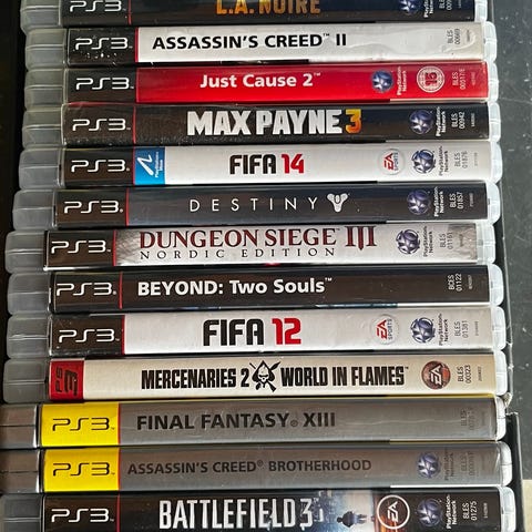 Samlingen inneholder flere Assassin’s Creed-spill til Playstation 3, i originale plastcover. Spillene er merket med aldersgrense 18 år. Baksiden av coverne viser informasjon om språk, innhold og antall spillere, samt tekniske krav for bruk på PS3-konsoll.