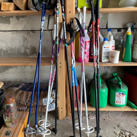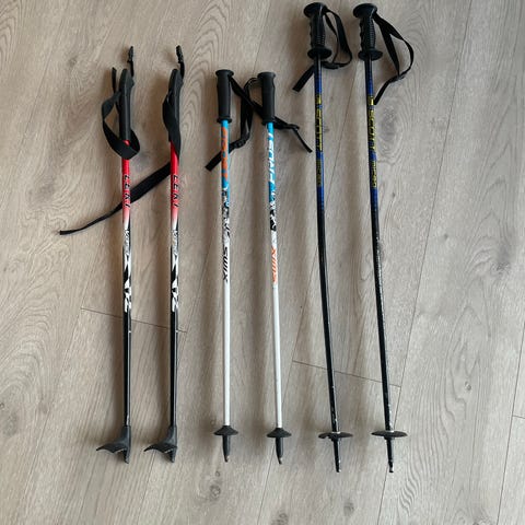 Skistaver i flere modeller og farger. Stavene har ergonomiske håndtak med håndstropper og trinser nederst.