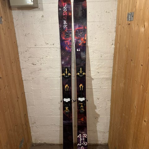Backcountry Stiff alpinski med bindinger.