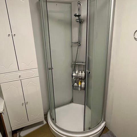 Dusjkabinettet er et år gammelt, kjøpt januar 2025. I god stand. Dusjkabinettet er ikke flatpakket. Nypris 6000. Følger med dusjtermostat (nypris 1200kr), men følger ikke med dusjhode og slange.