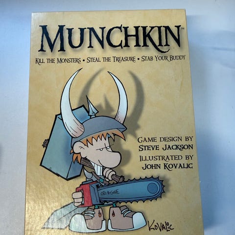 Steve Jackson Games Munchkin Oz kortspill. Temabasert kortspill inspirert av Oz-universet, utviklet av Andrew Hackard og illustrert av John Kovalic. Spillet inneholder kortstokker med dør- og skattkort, terning og spillregler. Spillerne åpner dører, slåss mot monstre, samler skatter og forsøker å nå nivå 10. Egnet som familiespill og for grupper som liker humoristiske fantasykortspill.