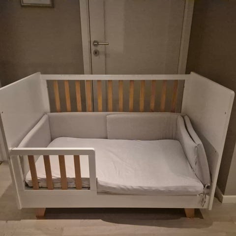 IKEA sengehest for barn i hvit farge. Festes med medfølgende braketter under madrassen for å gi en fysisk barriere langs sengekanten. Egnet for barneseng eller juniorseng der man ønsker ekstra sikkerhet mot at barnet ruller ut av sengen. Laget i et glatt, lettstelt materiale som er enkelt å tørke av ved behov.