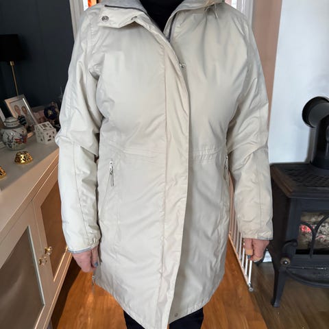 Pent brukt dame ytterjakke. Mørk dyp grønn/ mot brun. Passer en medium. Vasket hos renseri før slag.