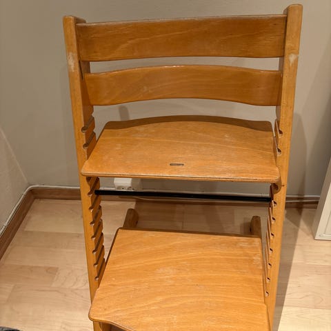 Ubetydelig brukt. Stått fremme som ekstra stol i tilfelle barnebesøk. Lite brukt. Må hentes.