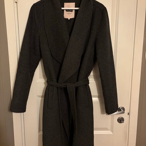 Part Two ullkåpe for dame i størrelse 36. Kåpen er beige og laget av en ullblanding med hovedandel ull. Den har krage, knepping med knapper foran og to skrå sidelommer. Passer som yttertøy i kjøligere vær.