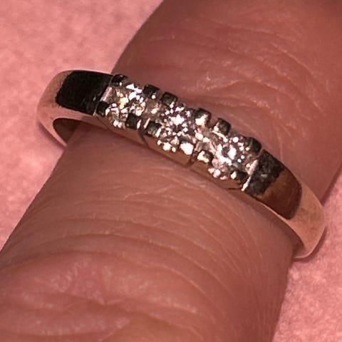 Stempel 375, gult gull med diamanter, selges da den ikke brukes. Selges kr.9000.-