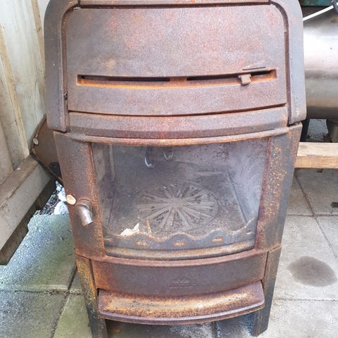 Ovnen stod i huset da vi kjøpte det og har ikke vært brukt av oss. Tidligere bruk er derfor ukjent. Fremstår som normalt pent brukt. Selges som den er.