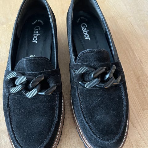 Står str 4 på skoen, men jeg bruker 38 og den passer perfekt. Bredde H, dvs bred sko. Sålen er av typen Optifit og Gabor Comfort. Nypris 2.000.