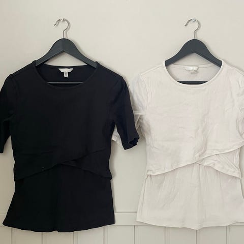 Pene amme t-skjorter i str L. En blå og en svart, ellers like. Gode og pene å ha på - praktisk ved amming. ONLY maternity.