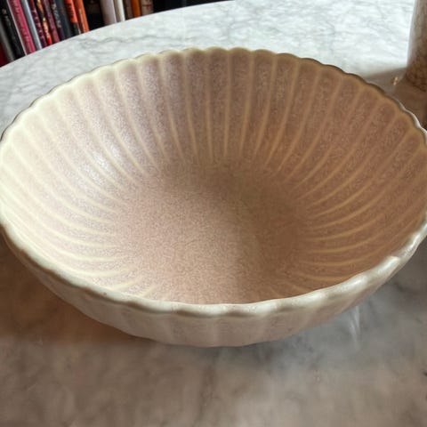 Dacore SAND skål i steintøy. Skålen har riflet utside og glatt innside. Diameter er ca. 16,4 cm og høyde ca. 5,4 cm. Farge sand. Egnet som serveringsskål eller til daglig bruk på kjøkkenet.