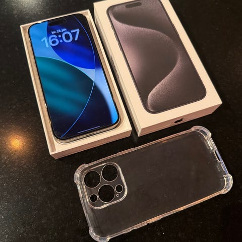 Apple iPhone 15 Pro Max mobiltelefon med 256 GB lagringskapasitet.