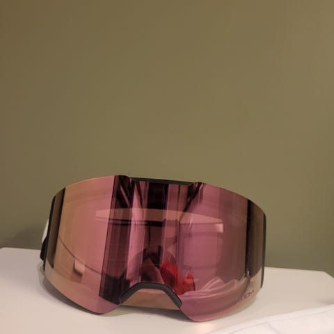 Selger stilige ski-/snowboardbriller med speilglass. Brillene gir godt syn i både sol og overskyet vær og sitter komfortabelt på ansiktet.