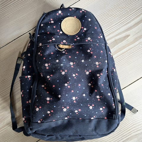 Beckmann skolesekk i rødt stoff med mønster, unisex.