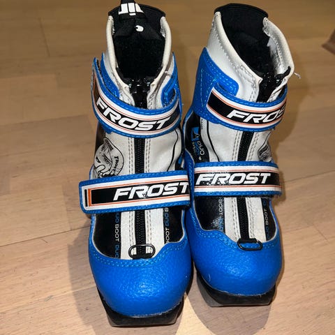 Pent brukte Frost Alpina langrennsstøvler str25. Enkle å ta av og på, stabile gode skisko for små nybegynnere på ski :)