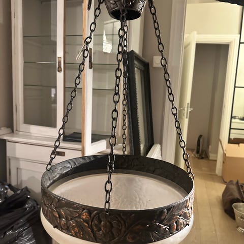 Fra svensk produsent Belid. Opal glass, aluminium sokkel. Den ene sokkelen har en grop for tilpasning av ledning mot tak.