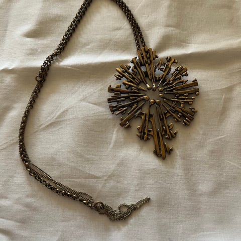 Selger ett av mine nydelige bronseanheng, med kjede, fra Studio Else & Paul i Norge, kjent for sin brutalisme-inspirerte stil.