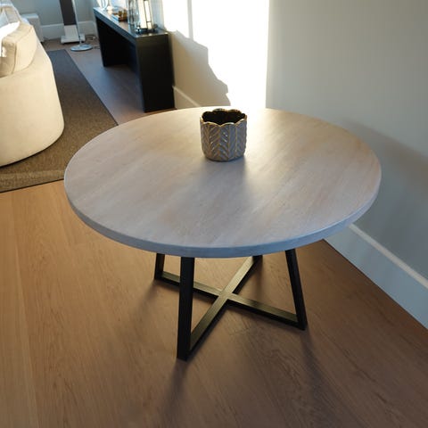 Bordet har noen mindre bruksmerker, som vist på bildene, men fremstår som pent og godt ivaretatt. Veldig solid og tidløst bord med plass til mange rundt.