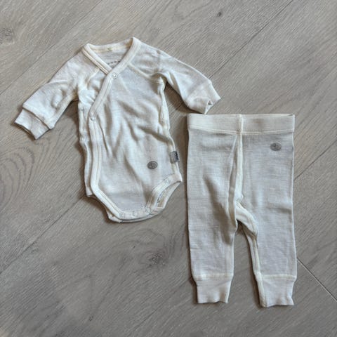 Joha babysett med body og strømpebukse i størrelse 56-62 i ull/silke🌸 Selges rimelig da det har flekk på body, og mørke flekker på knær som ikke gikk bort i vask. Ellers i fin stand, og supert å ha som innerste lag nå på vinteren!