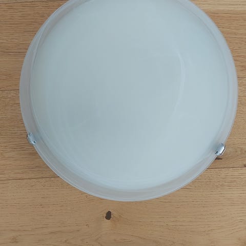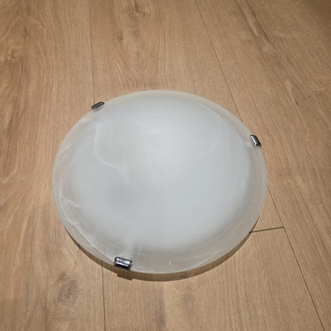 Klassisk taklampe med frostet glass og marmormønster. 30 cm i dm.